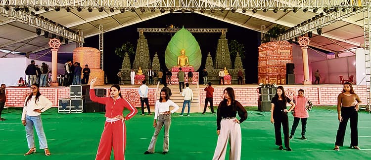 बोधगया. बोधगया में गुरुवार से तीन दिनों तक आयोजित होनेवाले बौद्ध महोत्सव का उद्घाटन गुरुवार की शाम पांच बजे होगा. तीन दिवसीय महोत्सव के दौरान देशी-विदेशी कलाकार अपनी प्रस्तुतियां देंगे, जिससे विभिन्न संस्कृतियों का संगम देखने को मिलेगा. महोत्सव के दौरान शुक्रवार को कालचक्र मैदान में महिला महोत्सव के साथ-साथ फैशन कलेक्शन का आयोजन किया जायेगा. इसमें विभिन्न कॉलेजों के छात्र-छात्राएं मगध की वस्त्र परंपरा, शिल्प और सांस्कृतिक विरासत को मंच पर प्रस्तुत करेंगे. इस फैशन कलेक्शन में स्थानीय 15 बुनकरों की सहभागिता रहेगी. कार्यक्रमों की जानकारी देते हुए जिलाधिकारी शशांक शुभंकर ने बताया कि इस वर्ष 100 से अधिक स्थानीय कलाकारों का चयन किया गया है, जो विभिन्न विधाओं में अपनी प्रस्तुतियां देंगे. इसके साथ ही पांच अलग-अलग देशों के कलाकार भी अपने-अपने देश के पारंपरिक नृत्य और कला का प्रदर्शन करेंगे. पहले दिन वियतनाम और थाइलैंड के कलाकारों की प्रस्तुति के बाद बॉलीवुड के पार्श्व गायक जावेद अली दर्शकों को अपनी गायिकी से मंत्रमुग्ध करेंगे. दूसरे दिन शुक्रवार को दिन में स्थानीय कलाकारों के साथ छात्र-छात्राओं द्वारा फैशन कलेक्शन और महिला महोत्सव का आयोजन होगा. शुक्रवार की शाम श्रीलंका और लाओस के कलाकारों के साथ बॉलीवुड के पार्श्व गायक रूप कुमार राठौर प्रस्तुति देंगे. शनिवार को बौद्ध महोत्सव का समापन होगा. समापन दिवस पर सांस्कृतिक संध्या के तहत जापानी कलाकारों की प्रस्तुति के बाद बॉलीवुड की पार्श्व गायिका भूमि त्रिवेदी की गायिकी का दर्शक आनंद उठायेंगे. डीएम ने बताया कि कालचक्र मैदान में विभागीय स्टॉल के साथ ग्रामश्री मेला और व्यंजन मेला के लिए भी स्टॉल लगाये गये हैं. इस बीच फैशन कलेक्शन में शामिल प्रतिभागियों ने बुधवार को कालचक्र मैदान में तैयार मंच पर रिहर्सल भी की. बौद्ध महोत्सव के दौरान शुक्रवार को महाबोधि मंदिर के साधना उद्यान में सेमिनार का आयोजन होगा. इसके अलावा 80 फुट बुद्ध प्रतिमा से महाबोधि मंदिर तक पीस मार्च भी निकाला जायेगा.