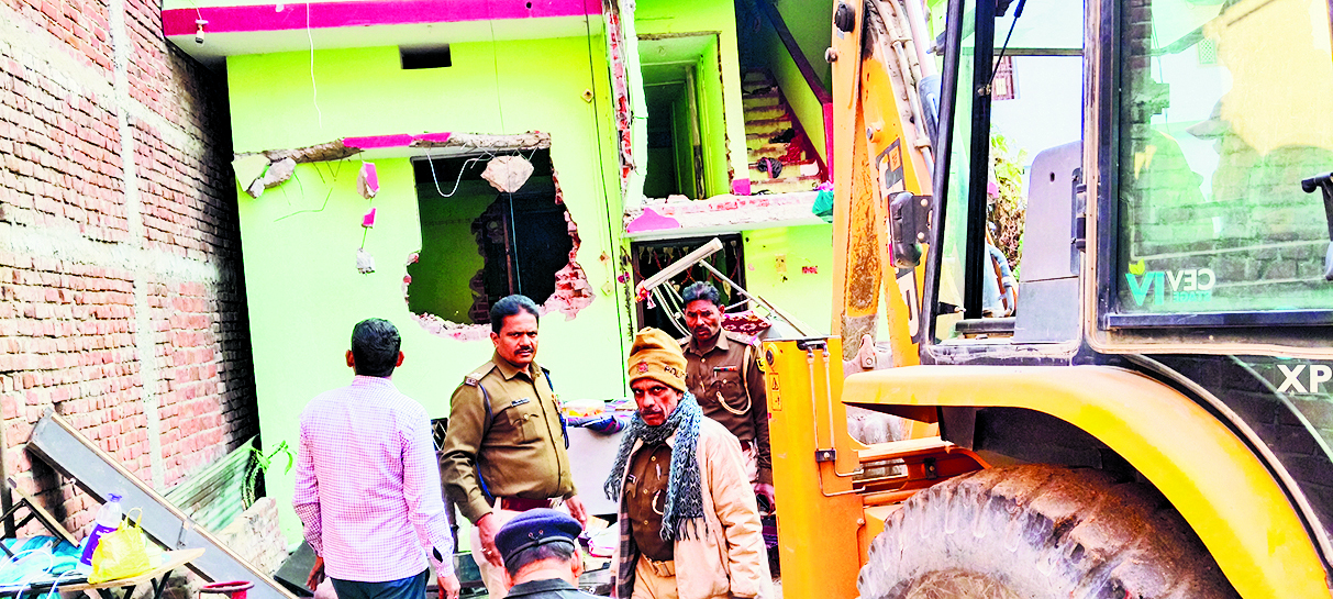 मानपुर. मुफस्सिल थाने की पुलिस ने चर्चित कुंदन सिंह हत्याकांड में दूसरे दिन भी आरोपित के घर पर बुलडोजर चलाया. इस दौरान घर के सभी खिड़की व किवाड़ उखाड़ लिये गये. यह कार्रवाई मुफस्सिल थाना क्षेत्र अंतर्गत भद्रकाली नगर जनकपुर मुहल्ले के रहनेवाले आरोपित आलोक कुमार उर्फ चोंचा के घर पर की गयी. आरोपित के घर में रहे सभी सामान, किवाड़, खिड़की, अलमीरा, बर्तन, पलंग, कुर्सी व टेबल समेत अन्य कीमती सामान को जब्त कर लिया गया. अभियान का नेतृत्व डीएसपी सुनील कुमार पांडेय व थानाध्यक्ष रघुनाथ प्रसाद कर रहे थे. इस अभियान में अंचल की ओर से दंडाधिकारी नियुक्त किया गया था. अभियान की वीडियोग्राफी भी करायी गयी. गौरतलब है कि कुंदन सिंह हत्याकांड मामले में पहले दिन बुनियादगंज थाना क्षेत्र अंतर्गत भुआलपुर गांव में शनिवार को आरोपित कौशल सिंह व उसके चचेरे भाई रेयान सिंह उर्फ पलटन के घर पर कार्रवाई हुई थी. इस हत्याकांड में एक-एक कर सभी फरार आरोपितों के घर पर कुर्की की जायेगी.