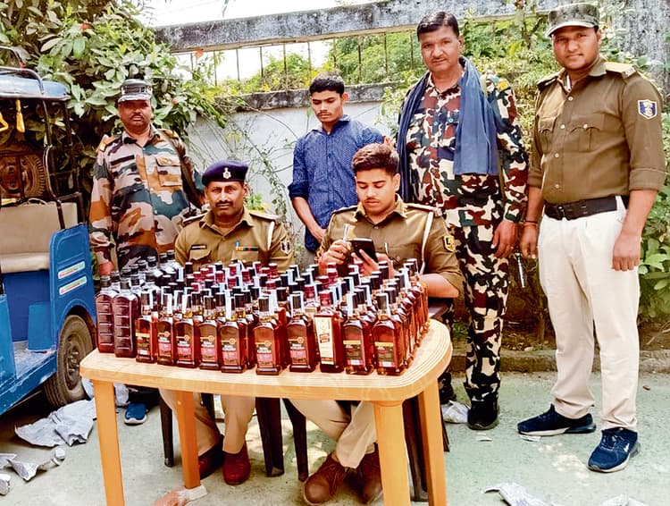 डोभी. डोभी-चतरा मुख्यमार्ग पर थाना क्षेत्र के बजौरा के समीप मधेशिया लाइन के पास से डोभी पुलिस ने एक इ-रिक्शा (टोटो) पर 104 बोतल विदेशी शराब के साथ एक शराब धंधेबाज को गिरफ्तार किया. इस संबंध में डोभी थानाध्यक्ष मुकेश कुमार ने बताया कि वाहन जांच के दौरान डोभी की तरफ से आ रहे एक टोटो की जांच की गयी, तो पाया की टोटो में एक तहखाना बना हुआ है तहखाने को खोलने पर उसमें विदेश शराब की कुल 104 बोतलें मिलीं. मौके से शराब तस्कर सह टोटो चालक को गिरफ्तार कर लिया गया. गिरफ्तार शराब कारोबारी की पहचान रेगनियां टांड़ निवासी कमलेश कुमार यादव के रूप में हुई. शराब सहित टोटो को जब्त कर थाना लाया गया. वही गिरफ्तार शराब तस्कर पर उत्पाद अधिनियम के तहत मामला दर्ज किया गया.