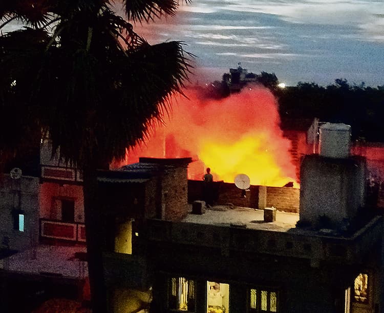 टिकारी. नगर पर्षद क्षेत्र के बहेलिया बिगहा मुहल्ला, कान्दू टोला में बुधवार की देर शाम घरेलू गैस सिलिंडर के लीक होने से लगी आग ने गरीब परिवार का सब कुछ छिन लिया. खाना बनाने के दौरान अचानक सिलिंडर में आग पकड़ ली, देखते ही देखते आग ने पूरे घर को अपनी चपेट में ले लिया. घरवालों ने आग बुझाने की भरपूर कोशिश की, मगर लपटें इतनी तेज थीं कि कोई सामान नहीं बचाया जा सका. आग की सूचना मिलते ही टिकारी अग्निशमन विभाग की टीम मौके पर पहुँची और कड़ी मशक्कत के बाद आग पर काबू पाया. घटना में घर का सारा सामान जलकर राख हो गया. पीड़ित परिवार रोज़ी-रोटी के लिए ठेला चलाता था. अचानक घटी इस घटना ने परिवार को पूरी तरह बेसहारा कर दिया है. आग से खाना बना रही महिला समेत परिवार के अन्य सदस्य भी झुलस गये, जिनका इलाज अनुमंडल अस्पताल में चल रहा है. स्थानीय लोगों ने प्रशासन से पीड़ित परिवार को अविलंब मुआवजा और पुनर्वास सहायता देने की मांग की है.