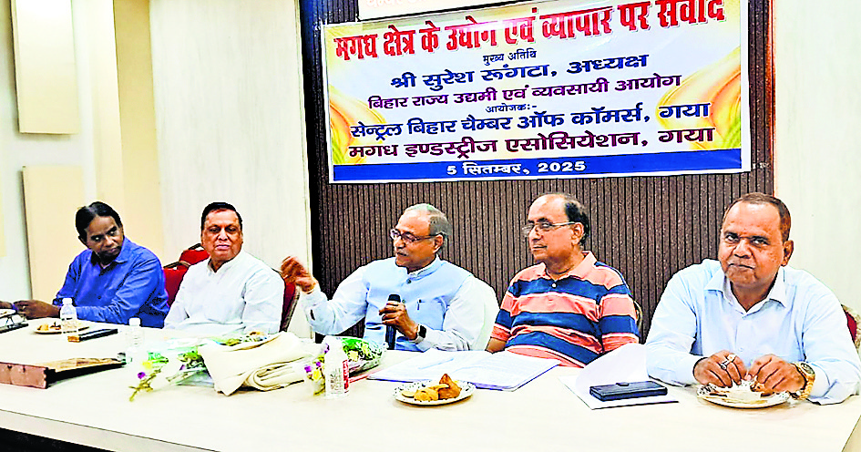 गया जी. चैंबर कार्यालय पुरानी गोदाम में सेंट्रल बिहार चैंबर ऑफ कॉमर्स और मगध इंडस्ट्री एसोसिएशन के संयुक्त तत्वावधान में “मगध क्षेत्र के उद्योग और व्यापार पर संवाद” विषय पर परिचर्चा का आयोजन किया गया. कार्यक्रम में बिहार राज्य उद्यमी एवं व्यवसायी आयोग के अध्यक्ष सुरेश रूंगटा मुख्य अतिथि के रूप में उपस्थित रहे. अध्यक्षता चैंबर अध्यक्ष विपेंद्र अग्रवाल ने की, जबकि स्वागत भाषण डॉ. कौशलेंद्र प्रताप और विषय प्रवेश डॉ. अनूप केडिया ने किया. अतिथियों का स्वागत पुष्पमाला और पुष्पगुच्छ से किया गया. स्वागत भाषण में डॉ प्रताप और डॉ केडिया ने बताया कि चैंबर के स्वर्ण जयंती कार्यक्रम में मुख्यमंत्री नीतीश कुमार और पूर्व उपमुख्यमंत्री सुशील मोदी से व्यावसायिक प्रकोष्ठ की मांग की गयी थी. आज आयोग के प्रथम अध्यक्ष के रूप में गयाजी में स्वागत करना गौरव की बात है. मुख्य अतिथि सुरेश रूंगटा ने कहा कि आयोग अध्यक्ष के रूप में यह किसी भी चैंबर ऑफ कॉमर्स की पहली बैठक है. उन्होंने बिहार में नये उद्योगों को बढ़ावा देने के लिए सरकार के “बिहार औद्योगिक निवेश प्रोत्साहन पैकेज 2025” के बारे में विस्तार से जानकारी दी. उन्होंने कहा कि 2016 की पॉलिसी के तहत जिन आवेदकों ने आवेदन किया था लेकिन प्रोडक्शन शुरू नहीं हो पाया, वे पुनः 2025 की नयी योजना के लिए आवेदन कर सकते हैं. जीएसटी रिफॉर्म को व्यापार के लिए लाभकारी बताते हुए उन्होंने कहा कि इससे वस्तुओं की कीमत घटेगी और कारोबारियों को सहूलियत मिलेगी. वहीं डायरेक्ट टैक्स में लिमिट बढ़ने से अधिक लोग कर देंगे और सरकार के राजस्व में वृद्धि होगी.
