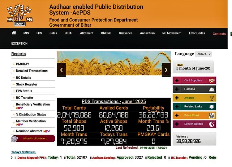 गया जी. राष्ट्रीय खाद्य सुरक्षा योजना के तहत जिले के 7.23 लाख राशन कार्डधारियों को उचित मूल्य पर अनाज उपलब्ध कराया जा रहा है. अब मई 2025 से राशन कार्डधारी एक साथ दो माह का राशन उठा रहे हैं. इसके लिए लाभुक को पीओएस मशीन पर दो बार अंगूठा लगाना होगा. हालांकि कई बार तकनीकी कारणों से अंगूठा एक बार में नहीं लगता, जिससे लाभुकों के बीच भ्रम की स्थिति बन जाती है कि कहीं उनका राशन दो से अधिक बार तो नहीं उठ गया. डीलरों के प्रति भी शक की स्थिति उत्पन्न होती है. गया जी टाउन ब्लॉक के एमओ अमरेंद्र कुमार ने बताया कि अब हर लाभुक अपने मोबाइल फोन से खुद यह जानकारी देख सकता है कि कब और कितना अनाज मिला है। जैसे ही थंब इंप्रेशन मशीन पर दर्ज होता है, बिहार सरकार की वेबसाइट पर तुरंत अपडेट हो जाती है.