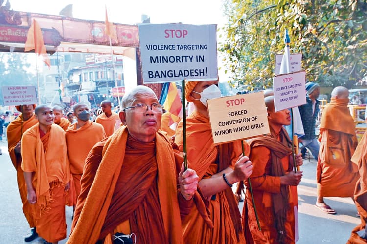 बोधगया. बांग्लादेश में हिंदू, सिख, बौद्ध व जैनियों पर अत्याचार व हिंसा के विरोध में रविवार को बोधगया में विरोध प्रदर्शन करते हुए आक्रोश मार्च निकाला गया. धर्म संस्कृति संगम के बैनर तले आयोजित विरोध मार्च में विभिन्न संगठनों से जुड़े लोग शामिल हुए. इसमें बोधगया स्थित बौद्ध मठों के भिक्षुओं ने भी हिस्सा लिया. महिलाओं व युवतियों ने भी विरोध प्रदर्शन में हिस्सा लेकर बांग्लादेश के शासन के खिलाफ नारेबाजी की. सभी ने हाथों में तख्तियां लेकर बांग्लादेश की स्थिति को नियंत्रित करने की अपील केंद्र सरकार से की. विरोध मार्च माया सरोवर उद्यान से शुरू हुआ जो महाबोधि मंदिर, कालचक्र मैदान होते हुए राजापुर मोड़ स्थित हनुमान मंदिर के पास समाप्त हुआ. इस अवसर पर आयोजकों ने कहा कि बांग्लादेश में सरकारी संरक्षण में हिंदू, सिख, जैन व बौद्धों पर अत्याचार हो रहा है व बौद्ध मठों के साथ मंदिर को जलाया जा रहा है. महिलाओं के साथ व्यभिचार किया जा रहा है. कहा गया कि बांग्लादेश में यह सब वहां की अंतरिम सरकार मो युनूस के संरक्षण में हो रहा है. इस कारण भारत सरकार इस मामले में दखल देते हुए त्वरित कार्रवाई कर स्थिति को नियंत्रित करे. कहा कि बांग्लादेश में अल्पसंख्यकों की रक्षा करते हुए मो युनूस को मिले शांति का पुरस्कार वापस लिया जाये. आक्रोश मार्च में धर्म संस्कृति संगम से संजय कुमार सिंह,सुरेंद्र कुमार गुप्ता, रवि कुमार, संजय यादव, निरज निश्चल, डॉ राधाकृष्ण मिश्र उर्फ भोला मिश्रा, शंकर यादव, केके कर्ण, बोधगया मठ से स्वामी सत्यानंद, स्वामी विवेकानंद, बिंदेश्वर मंडल, रमेश कुमार छोटी, सुमित मौर्या, हर्ष सिंह, अमन शेखर, अमित कुमार, लाओस बौद्ध मठ के प्रभारी भिक्खु साइसाना के नेतृत्व में शामिल कई बौद्ध भिक्षुओं के साथ मगध विवि की प्राध्यापक प्रो एकता वर्मा सहित अन्य शामिल हुए.