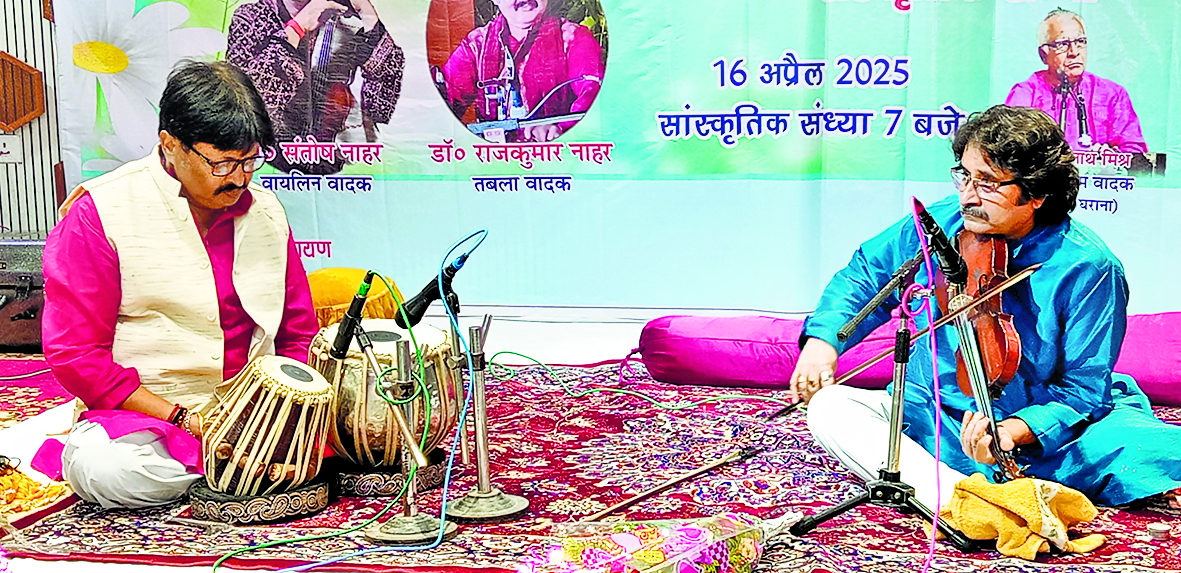 गया. रामसागर रोड स्थित होटल मंत्रा रीजेंसी में बुधवार को सुर सलिला ट्रस्ट द्वारा पंडित गोपाल लाल सिजुआर की स्मृति में जन्म शताब्दी पर आयोजित हीरक जयंती समारोह के तहत सांस्कृतिक संध्या का आयोजन किया गया. कार्यक्रम का उद्घाटन ट्रस्ट के अध्यक्ष डॉ केके नारायण, ओंकारनाथ मैतीन, राय मदन किशोर, उषा डालमिया व अन्य अतिथियों ने दीप प्रज्वलित कर व पंडित गोपाल लाल सिजुआर के चित्र पर माल्यार्पण कर किया. कार्यक्रम को संबोधित करते हुए डॉ नारायण ने पंडित गोपाल लाल सिजुआर के व्यक्तित्व व कृतित्व पर चर्चा की. स्वागत भाषण ट्रस्ट के संस्थापक राजेंद्र सिजुआर ने दिया. इसके बाद सांस्कृतिक कार्यक्रम की शुरुआत दिल्ली से आये भागलपुर मिश्रा घराने के विख्यात वायलिन वादक पंडित (डॉ) संतोष नाहर की प्रस्तुति से हुई. श्री नाहर ने अपने वादन की पहली कड़ी में सुमधुर दक्षिण भारतीय राग वाचस्पति से अपने कार्यक्रम का आगाज किया. नाहर ने अपने वादन का समापन राजस्थान के प्रसिद्ध गायकी बीकानेर के मांड केसरिया बालम पधारो…. से किया, जिसमें कुछ प्रदेशों के लोक रंग को भी दिखाया. इनके साथ राजकुमार नाहर तबला पर संगत कर रहे थे. उनकी प्रस्तुति के बाद बनारस घराने के गायक पद्म भूषण पंडित साजन मिश्र व स्वरांश मिश्र की शास्त्रीय गायन की मनमोहक प्रस्तुति हुई. इनके साथ हारमोनियम पर बनारस घराने के पंडित धर्मनाथ मिश्र, तबला पर डॉ राज कुमार नाहर, सारंगी पर बनारस घराने के विनायक सहाय व वायलिन पर पंडित संतोष नाहर संगत कर रहे थे. कार्यक्रम में श्याम भंडारी, डॉ राकेश कुमार सिन्हा रवि, सुरेंद्र कुमार पांडेय, दिनेश महुआर, डॉ नंदन कुमार सिन्हा, नचिकेता सहित काफी संख्या में स्थानीय कलाकार व संगीत प्रेमी उपस्थित थे.