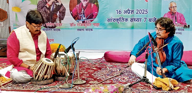 गया. रामसागर रोड स्थित होटल मंत्रा रीजेंसी में बुधवार को सुर सलिला ट्रस्ट द्वारा पंडित गोपाल लाल सिजुआर की स्मृति में जन्म शताब्दी पर आयोजित हीरक जयंती समारोह के तहत सांस्कृतिक संध्या का आयोजन किया गया. कार्यक्रम का उद्घाटन ट्रस्ट के अध्यक्ष डॉ केके नारायण, ओंकारनाथ मैतीन, राय मदन किशोर, उषा डालमिया व अन्य अतिथियों ने दीप प्रज्वलित कर व पंडित गोपाल लाल सिजुआर के चित्र पर माल्यार्पण कर किया. कार्यक्रम को संबोधित करते हुए डॉ नारायण ने पंडित गोपाल लाल सिजुआर के व्यक्तित्व व कृतित्व पर चर्चा की. स्वागत भाषण ट्रस्ट के संस्थापक राजेंद्र सिजुआर ने दिया. इसके बाद सांस्कृतिक कार्यक्रम की शुरुआत दिल्ली से आये भागलपुर मिश्रा घराने के विख्यात वायलिन वादक पंडित (डॉ) संतोष नाहर की प्रस्तुति से हुई. श्री नाहर ने अपने वादन की पहली कड़ी में सुमधुर दक्षिण भारतीय राग वाचस्पति से अपने कार्यक्रम का आगाज किया. नाहर ने अपने वादन का समापन राजस्थान के प्रसिद्ध गायकी बीकानेर के मांड केसरिया बालम पधारो…. से किया, जिसमें कुछ प्रदेशों के लोक रंग को भी दिखाया. इनके साथ राजकुमार नाहर तबला पर संगत कर रहे थे. उनकी प्रस्तुति के बाद बनारस घराने के गायक पद्म भूषण पंडित साजन मिश्र व स्वरांश मिश्र की शास्त्रीय गायन की मनमोहक प्रस्तुति हुई. इनके साथ हारमोनियम पर बनारस घराने के पंडित धर्मनाथ मिश्र, तबला पर डॉ राज कुमार नाहर, सारंगी पर बनारस घराने के विनायक सहाय व वायलिन पर पंडित संतोष नाहर संगत कर रहे थे. कार्यक्रम में श्याम भंडारी, डॉ राकेश कुमार सिन्हा रवि, सुरेंद्र कुमार पांडेय, दिनेश महुआर, डॉ नंदन कुमार सिन्हा, नचिकेता सहित काफी संख्या में स्थानीय कलाकार व संगीत प्रेमी उपस्थित थे.