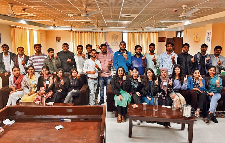 गया. सीयूएसबी में विद्यार्थियों द्वारा संचालित इकाई स्माइल द्वारा मनाये जा रहे राष्ट्रीय मतदाता दिवस सप्ताह के अंतर्गत मॉक इलेक्शन का आयोजन किया गया. कुलपति प्रो कामेश्वर नाथ सिंह के संरक्षण में प्रो प्रणव कुमार एवं राजनीतिक अध्ययन विभाग के प्राध्यापकों के मार्गदर्शन में मॉक इलेक्शन का आयोजन विश्वविद्यालय के चाणक्य भवन स्थित मूट कोर्ट में किया गया. पीआरओ मोहम्मद मुदस्सीर आलम ने बताया कि कुलपति प्रो कामेश्वर नाथ सिंह के निर्देशानुसार आयोजित कार्यक्रम का उद्देश्य विश्वविद्यालय के आसपास के क्षेत्रों में शत-प्रतिशत मतदान के लक्ष्य को प्राप्त करना था. टीम स्माइल के तत्वावधान में आयोजित कार्यक्रम में छात्रों ने लोकतांत्रिक प्रक्रिया और चुनावी व्यवस्था की बारीकियों को समझा. इस कार्यक्रम के माध्यम से छात्रों को लोकतांत्रिक मूल्यों को समझने और समाज में मतदान के महत्व का प्रचार-प्रसार करने के लिए प्रेरित किया गया. कार्यक्रम में सामाजिक विज्ञान संकाय के अधिष्ठाता प्रो प्रणव कुमार, प्रो प्रवीण कुमार, डॉ अभय कुमार, डॉ सुमित कुमार पाठक और डॉ पवन कुमार सिंह, डॉ अबोध कुमार, डॉ कुमारी नीतू, डॉ नेहा शुक्ला, रेनू सहित अन्य उपस्थित रहे. कार्यक्रम की शुरुआत में छात्र-छात्राओं ने अपने विचार प्रस्तुत करते हुए चुनावी बारीकियों से जुड़े विभिन्न मुद्दों पर अपना वक्तव्य रखा. प्रतिभागियों ने अपनी रचनात्मकता व तार्किकता से उपस्थित लोगों को प्रभावित किया, जिसमें चेतना, सौम्या, प्रीति, हिमांशु, ज्ञान, जहरा, सुशांत, सिमरन व अन्य शामिल रहे. इसके बाद मॉक इलेक्शन का आयोजन किया गया जिसमें छात्रों और उपस्थित दर्शकों ने मतदान प्रक्रिया में हिस्सा लिया. टीम स्माइल के सदस्य अतुल, आशीष, सूरज, आकांक्षा, अमन, भावना, अंकेश ने इस आयोजन को सफल बनाने में महत्वपूर्ण भूमिका निभाई.