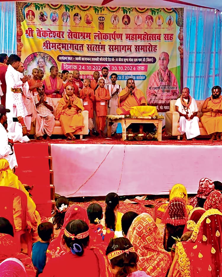 मानपुर. वैष्णव युवा ब्रिगेड की ओर से सीताकुंड के नजदीक स्वामी सहजानंद सरस्वती (एसएस) कॉलोनी में चक्रपाणि स्वामीजी द्वारा निर्मित श्रीवेंकटेश्वर सेवाश्रम में यज्ञ मंडप प्रवेश के साथ ही श्री वेंकटेश्वर भगवान की प्रतिमा का अनावरण श्रीवैष्णव सिद्ध पीठाधीश्वर नरहट के स्वामी रंगनाथाचार्या, श्रीचक्रपाणि स्वामी, अयोध्या के श्रीरंगनाथ स्वामी सहित दर्जनों आचार्य व उचिरमा गुरुकुल के शिष्यों द्वारा किया गया. नरहट पीठाधीश्वर स्वामी रंगनाथाचार्य जी द्वारा बताया गया कि चक्रपाणि स्वामी द्वारा श्रीवेंकटेश्वर सेवाश्रम सह वेंकटेश्वर भगवान की प्रतिमा स्थापित कर गया की पावन भूमि को और अविस्मरणीय कर दिया गया. यह समस्त वैष्णव परिवार के लिए गौरव की बात है तथा स्वामी जी ने श्रद्धालुओं को बताया कि गयाजी विष्णु धाम दर्शन पश्चात सीता कुंड भ्रमण व श्रीवेंकटेश्वर सेवाश्रम में वेंकटेश भगवान का दर्शन मात्र से लोगों को अविश्वसनीय अनुभूति प्रदान होगी. सेवाश्रम के मुख्य संस्थापक स्वामी चक्रपाणि ने बताया कि अभी यह कार्यक्रम कथा प्रवचन सत्संग 30 अक्तूबर तक चलेगा. 30 अक्तूबर को भव्य भंडारे के साथ पूर्णाहुति होगी.