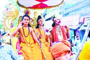 डेल्हा मुहल्ले से पहली बार श्रीराम जन्मोत्सव पर किन्नर समाज द्वारा शोभायात्रा निकाली गयी. इस शोभा यात्रा का नेतृत्व सुरेश किन्नर द्वारा किया गया था. इस शोभायात्रा में एक दर्जन से अधिक किन्नर समाज से जुड़ी महिलाएं शामिल थी जो सोहर व भगवान श्री राम का भजन ढोल बाजे के साथ गाती हुई आगे बढ़ रही थी.60 से अधिक झांकियाें के कलाकारों ने किया मनमोहक प्रदर्शन