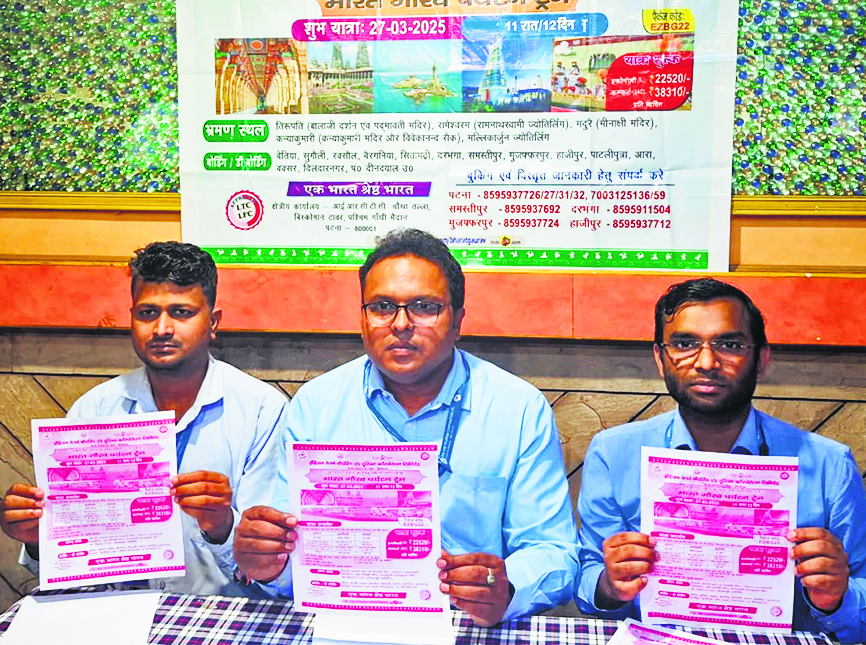 गया. आइआरसीटीसी की ओर से देखाे अपना देश के तहत भारत गौरव ट्रेन से कई जयोतिर्लिंग का भ्रमण कराया जायेगा. इसके लिए तिथि की घोषणा कर दी गयी है. आइआरसीटीसी के क्षेत्रीय प्रबंधक राजेश कुमार व स्टेशन ऑफिसर गौतम किशोर, पर्यटक सहायक रोहित राज, नरेंद्र कुमार सिंह ने प्रेस वार्ता के दौरान बताया कि यह भ्रमण 11 रात 12 दिनों के लिए है. गया के स्टेशन ऑफिसर गौतम किशोर ने बताया कि पर्यटन को बढ़ावा देने के लिए लगभग 33 प्रतिशत की रियायत प्रदान की जा रही है. वहीं ग्रुप में जानेवाले प्रत्येक व्यक्ति को 750 रुपये की छूट मिलेगी. 27 मार्च को भारत गौरव ट्रेन बेतिया से खुलकर सगौली, रक्सौल, बैरगिनिया, सीतामढ़ी, दरभंगा, समस्तीपुर, मुजफ्फरपुर, हाजीपुर, पाटलिपुत्रा, आरा, बक्सर व पंडित दीनदयाल उपाध्याय स्टेशन होकर चलायेगी जायेगी. वहीं गया के लोग इस ट्रेन में भ्रमण करने के लिए गया रेलवे स्टेशन स्थित सात नंबर प्लेटफॉर्म पर आइआरसीटीसी ऑफिस में संपर्क कर सकते है. इस ट्रेन से लोगों को तिरूपति, रामेश्वरम, श्री रामनाथस्वामी मंदिर, मीनाक्षी अम्मन मंदिर, कन्याकुमारी, व श्री शैलम मल्लिकार्जुन ज्योतिर्लिंग का भ्रमण कराया जायेगा. इसके लिए आइआरसीटीसी के बेबसाइट www.irctctourism.com या फिर 8595937731 व 8595937732 नंबर पर संपर्क कर सकते हैं.