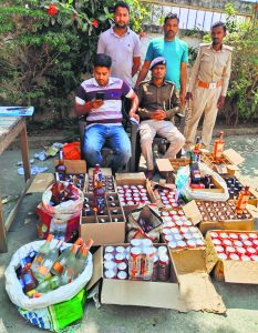 डोभी. वरीय पुलिस अधीक्षक के निर्देश पर डोभी पुलिस ने शराब माफिया शंकर साव की दुकान व घर पर एक साथ छापेमारी कर होली में खपाने के उद्देश्य से रखी भारी मात्रा में विदेशी शराब जब्त की गयी. वरीय पुलिस अधीक्षक को गुप्त सूचना मिल रही थी कि डोभी थाना क्षेत्र में शराब माफिया शंकर साव बड़े पैमाने पर विदेशी शराब की होम डिलेवरी करता है. होली में विदेशी शराब को खपाने तथा होम डिलिवरी करने के लिए भारी मात्रा में शराब रखी है. इस गुप्त सूचना पर वरीय पुलिस अधीक्षक ने डोभी थाने को सघन छापेमारी करने का आदेश दिया. आदेश के आलोक में डोभी थानाध्यक्ष मुकेश कुमार के नेतृत्व में शराब माफिया शंकर साव की दुकान थाना क्षेत्र के मटनमोड़ पर स्थित डायमंड जेनरल स्टोर पर छापेमारी की. वहां से विभिन्न ब्रांड के 25 लीटर शराब व बियर जब्त की. इस मौके से शराब माफिया शंकर साव व उसके भाई 38 वर्षीय भोला साव को गिरफ्तार कर उसके घर पर छापेमारी की. घर में शराब रखने के लिए गोदाम बना हुआ था. वहां से विभिन्न ब्रांड के विदेशी शराब 135 लीटर जब्त की. गौरतलब है कि शराब माफिया शंकर साव डोभी प्रखंड क्षेत्र के विभिन्न जगहों पर प्रतिदिन बड़े पैमाने पर विदेशी शराब सहित ठंडा बियर का होम डिलिवरी करता है. डोभी थानाध्यक्ष मुकेश कुमार ने बताया कि गिरफ्तार शराब माफिया पर उत्पाद अधिनियम के तहत मामला दर्ज कर न्यायिक हिरासत में जेल भेजा गया.
