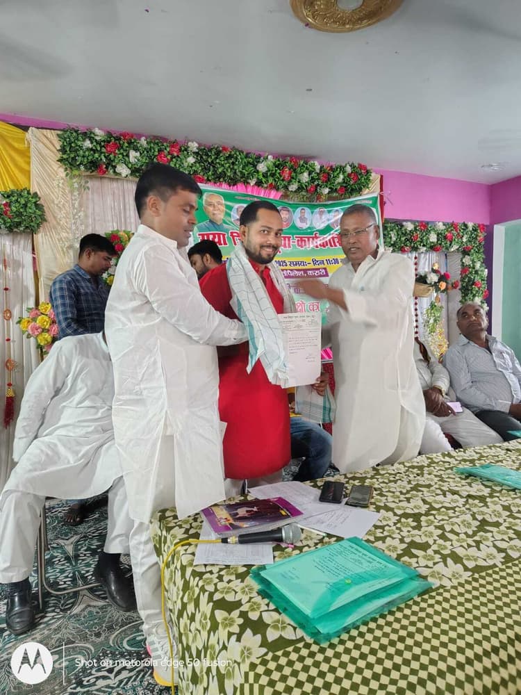 प्रखंड के उतरी बाजार निवासी गीतेश दांगी को जिला समिति द्वारा युवा जदयू प्रखंड अध्यक्ष की जिम्मेवारी दी गयी है. जिसको लेकर मनोनयन पत्र सोमवार को प्रदान किया गया. गीतेश दांगी को जिला कार्यालय में जदयू जिला अध्यक्ष द्वारिका प्रसाद व युवा जदयू जिला अध्यक्ष सतीश पटेल के द्वारा पत्र दिया गया. वहीं युवक ने पार्टी के प्रति समर्पण भावना के साथ काम करने का संकल्प लिया. साथ ही आगामी विधान सभा चुनाव में पार्टी व गठबंधन के प्रति सक्रिय रहने की बात कहीं. गीतेश दांगी को इस उपलब्धि के लिए जदयू प्रखंड अध्यक्ष सुरेश प्रसाद विद्यार्थी, सत्येंद्र प्रसाद, सुजीत कुमार आदि ने बधाई दी है.डिस्क्लेमर: यह प्रभात खबर समाचार पत्र की ऑटोमेटेड न्यूज फीड है. इसे प्रभात खबर डॉट कॉम की टीम ने संपादित नहीं किया है