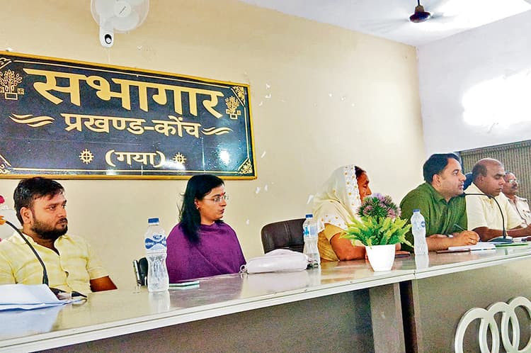 कोंच. प्रखंड कार्यालय स्थित किसान सभागार में गुरुवार को आयोजित पंचायत समिति की बैठक में पीएम आवास योजना के सहायक मो अली पर ग्रामीणों से ₹2000 से ₹10,000 तक की अवैध वसूली का गंभीर आरोप लगाया गया. यह मामला पंचायत समिति सदस्य जयराम यादव द्वारा सदन में उठाया गया. बैठक की अध्यक्षता प्रखंड प्रमुख मनी देवी ने की, जबकि संचालन प्रखंड विकास पदाधिकारी (बीडीओ) विपुल भारद्वाज द्वारा किया गया. आरोपों पर बीडीओ ने त्वरित जांच और कार्रवाई का आश्वासन दिया. बैठक के दौरान मनरेगा जूनियर इंजीनियर (जेइ) के खिलाफ भी शिकायतें सामने आयीं. इन मामलों पर मनरेगा कार्यक्रम पदाधिकारी (पीओ) मिथलेश कुमार ने सदन को स्थिति की जानकारी दी.