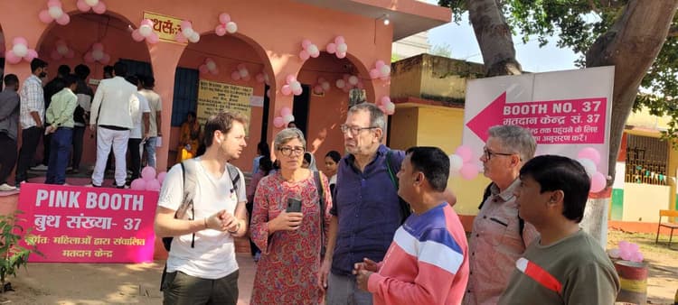 फोटो- गया बोधगया 220- बोधगया में पिंक बूथ पर मतदान प्रक्रिया को देखने पहुंचे फ्रांस के नागरिक