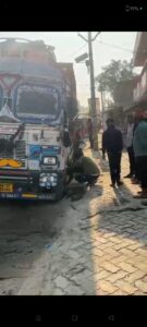 नाले में लोडेड ट्रैक फंस, सड़क जाम