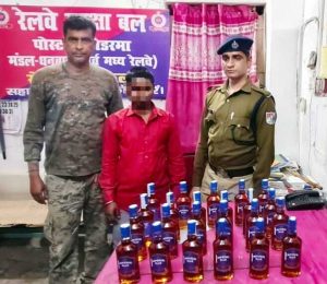 आरपीएफ की टीम ने बुधवार की देर रात गया-कोडरमा रेलखंड पर अभियान चलाने के दौरान विदेशी शराब के साथ एक युवक को गिरफ्तार किया है.