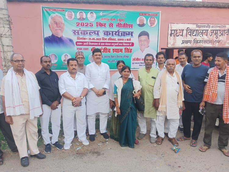 अतरी विधानसभा क्षेत्र के खिजरसराय प्रखंड क्षेत्र के जमुआमा पंचायत में 2025 फिर से नीतीश संकल्प कार्यक्रम का आयोजन किया गया. इस कार्यक्रम वक्ताओं ने नीतीश कुमार के 20 साल के कार्यकाल में बिहार में हुई अभूतपूर्व तरक्की की चर्चा के साथ महिला उत्थान में सरकार की भूमिका से लोगों को रूबरू कराया. इसमें मुख्य वक्ता के रूप में संजीव श्याम सिंह ने फिर से नीतीश कुमार को मुख्यमंत्री बनने को लेकर संकल्प लिया. मौके पर प्रखंड अध्यक्ष सह बीस सूत्री अध्यक्ष पिंकी देवी, अनुसूचित जाति जनजाति प्रकोष्ठ अध्यक्षा शोभा कुमारी, पूर्व प्रखंड अध्यक्ष खिजरसराय जदयू अंकित कुमार, पवन भारती, अरविंद वर्मा, बिपुल कुमार , भीम सिंह, कृष्ण मुरारी सिंह, बोला सिंह , उमेश दास व अन्य सैकड़ों लोग मौजूद थे.डिस्क्लेमर: यह प्रभात खबर समाचार पत्र की ऑटोमेटेड न्यूज फीड है. इसे प्रभात खबर डॉट कॉम की टीम ने संपादित नहीं किया है