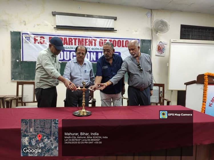 बोधगया. मगध विश्वविद्यालय के स्नात्तकोत्तर जंतु विज्ञान विभाग के सभागार में कुलपति प्रो एसपी शाही के संरक्षण में जंतु विज्ञान विभागाध्यक्ष प्रो दिलीप कुमार केशरी की अध्यक्षता में सत्र 2024-2026 के नवनामांकित छात्रों का इंडक्शन मीट कार्यक्रम का आयोजन किया गया. इसका उद्घाटन विभागाध्यक्ष प्रो केशरी, प्रो एसएनपी दीन, प्रो सुनील कुमार सिंह व प्रो विजय बहादुर सिंह ने संयुक्त रूप से दीप प्रज्जवलन कर किया. विभागाध्यक्ष प्रो केशरी ने अपने संबोधन में छात्रों को लगातार अपने वर्ग में अपनी उपस्थिति सुनिश्चित करते हुए चरित्र निर्माण के साथ पढ़ाई, खेलकूद व अन्य सामाजिक गतिविधियों में अपना सर्वश्रेष्ठ प्रदर्शन करने को प्रेरित किया. प्रो दीन ने छात्रों को वर्ग के साथ साथ विभाग के पुस्तकालय के उपयोग के लिए समझाया. प्रो सिंह ने छात्रों को चरित्र निर्माण एवं छात्रों एवं शिक्षक के बीच अच्छे संबंध पर बल दिया.