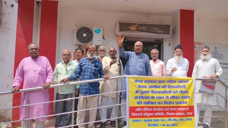 गया. शहर के प्रधान डाकघर के परिसर में गुरुवार को ऑल इंडिया केंद्रीय व राज्य सरकार पेंशनर्स संयुक्त समिति जिला शाखा गया द्वारा केंद्र सरकार के खिलाफ विरोध प्रदर्शन किया गया. बताया जाता है कि आठवें वेतन आयोग में की गयी सिफारिश जिसमें पुराने पेंशनधारियों को अपग्रेडेशन की सुविधा से वंचित रखा गया है, इसके खिलाफ केंद्र व राज्य सरकार के पुराने पेंशनधारियों में काफी रोष व्याप्त है. अपनी मांगों को पूरा करने के लिए प्रधान डाकघर कार्यालय के समक्ष पुराने पेंशनधारियों द्वारा विरोध प्रदर्शन किया गया. पुराने पेंशनधारियों की मांग है कि पुरानी पेंशन व्यवस्था की स्थिति को बरकरार रखा जाए और आठवें वेतन आयोग में की गयी सिफारिश जिसमें पुराने पेंशनधारियों को अपग्रेडेशन की सुविधा से वंचित रखने का प्रावधान किया गया है को समाप्त किया जाये और अपग्रेडेशन की सुविधा दी जाये. इस विरोध प्रदर्शन में महासंघ के नेता मोहम्मद शमीम अहमद, महासंघ के राज्य स्तरीय नेता कपिल देव प्रसाद, कोऑर्डिनेटर सह कार्यकारिणी सदस्य ऑल इंडिया रेलवे मेंस फेडरेशन मिथिलेश कुमार, अजय कुमार एवं सक्रिय सदस्य उपस्थित थे.