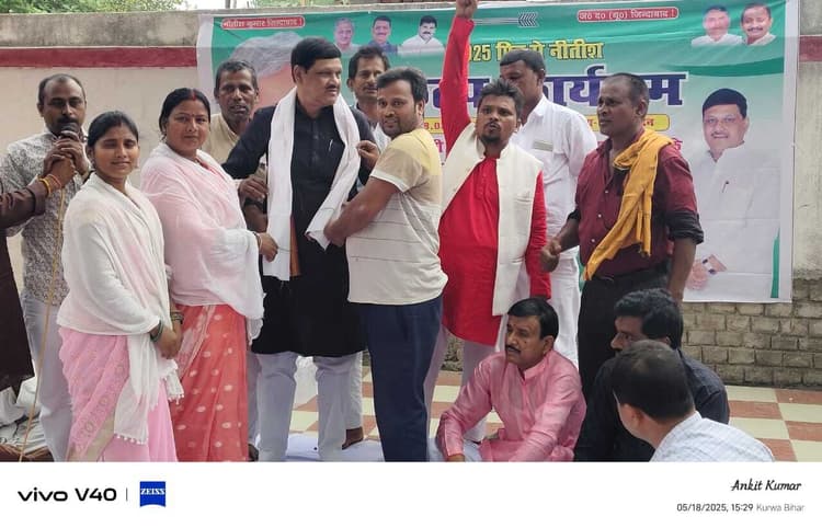 खिजरसराय. अतरी विधानसभा क्षेत्र के खिजरसराय प्रखंड के कुड़वा पंचायत में 2025 फिर से नीतीश संकल्प कार्यक्रम के बैनर तले सभा का आयोजन किया गया .मुख्य वक्ता संजीव श्याम ने मुख्यमंत्री नीतीश कुमार के द्वारा किये गये कार्यों के बारे में खास कर महिलाओं को मिलने वाली सुविधाएं, छात्र-छात्राओं को मिलने वाली सुविधा के बारे में लोगों को बताया. उन्होंने सभा के माध्यम से लोगों को यह संकल्प दिलाया कि 2025 फिर से नीतीश और 225. मुख्य अतिथि के रूप में 20 सूत्री अध्यक्ष जदयू खिजरसराय पिंकी देवी, अनुसूचित जाति प्रकोष्ठ अध्यक्ष जदयू शोभा देवी, पूर्व प्रखंड अध्यक्ष जदयू अंकित कुमार, तेज नारायण शर्मा, अरविंद कुमार दांगी जिला बीस सूत्री सदस्य, नंद किशोर जी ने अपनी बात रखी. इस कार्यक्रम में कुड़वा पंचायत वर्तमान मुखिया राजबलम पासवान, वीरेंद्र कुशवाहा, राकेश यादव, बिगन चंद्रवंशी, चंद्रशेखर गिरी, मान सिंह यादव, इरशाद खान, उग्रेश दास, संजय दांगी, विपुल कुमार, गिरजा चौधरी, धर्मेंद्र कुमार सैकड़ों लोग उपस्थित हुए.