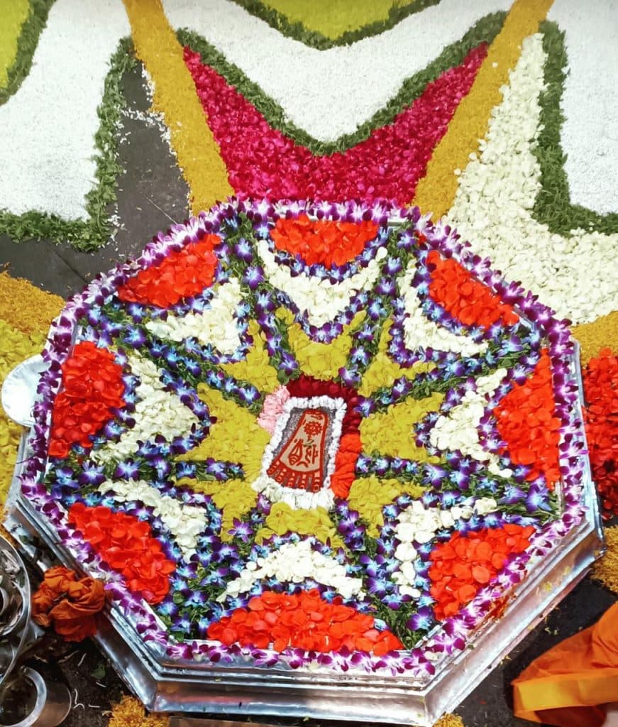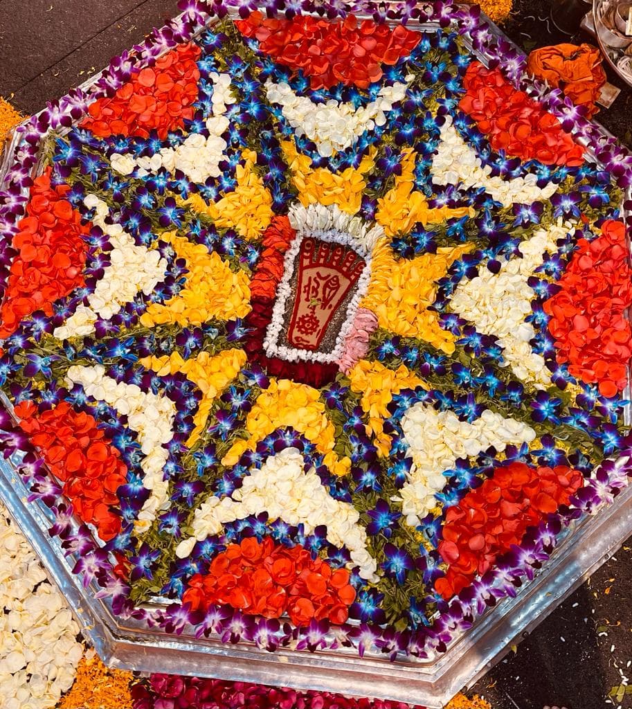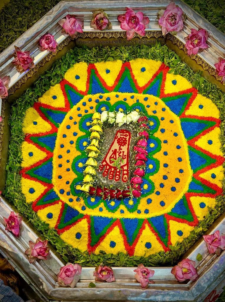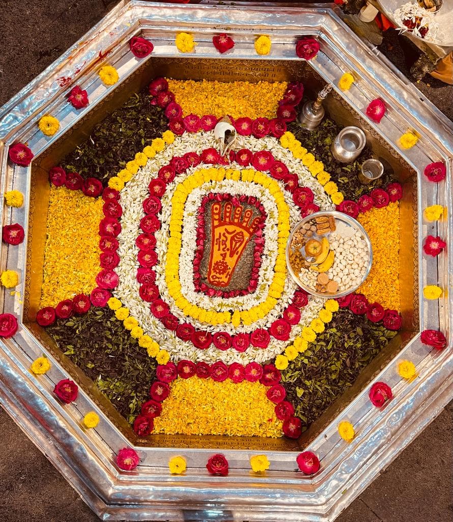 भगवान के चरण चिह्न का शृंगार हर रोज अलग-अलग वस्तुओं को बदल कर किया जाता है. किसी दिन मेवा से, किसी दिन केवल अलग-अलग फूलों से, तो किसी दिन केवल एक तरह का फूल जैसे गेंदा, किसी दिन पत्थरों को विभिन्न रंगों में रंग कर, तो किसी दिन अरवा चावल के दाने को अलग-अलग रंगों में रंग कर, तो किसी दिन सिर्फ तुलसी पत्र से शृंगार किया जाता है.