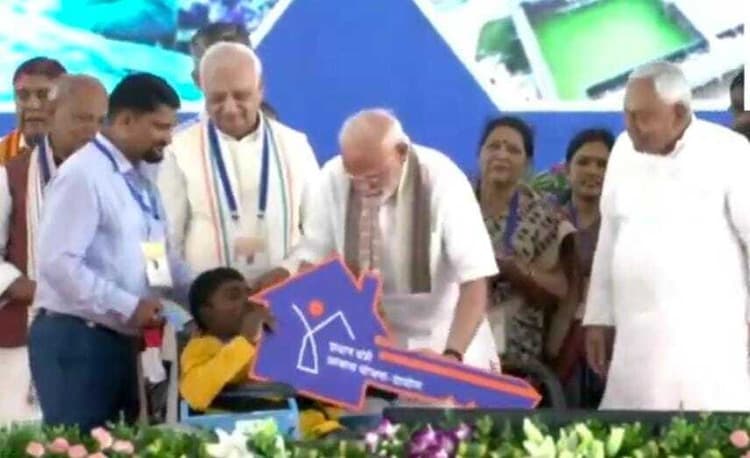वजीरगंज. बिच्छा पंचायत के बिच्छा निवासी रंजीत चौधरी पिता शंभू चौधरी को प्रधानमंत्री नरेंद्र मोदी के द्वारा आवास योजना के की चाबी दी गयी. उक्त जानकारी प्रखंड विकास पदाधिकारी प्रभाकर सिंह ने देते हुए कहा कि वजीरगंज क्षेत्र में प्रधानमंत्री आवास योजना के लाभुक रंजीत चौधरी को प्रधानमंत्री आवास योजना के तहत नये घर की चाबी प्रधानमंत्री के द्वारा सौंपी गयी. वहीं इस मामले को लेकर लाभुक रंजीत चौधरी ने प्रधानमंत्री के द्वारा नये घर के चाबी मिलने से काफी खुशी जाहिर की.
