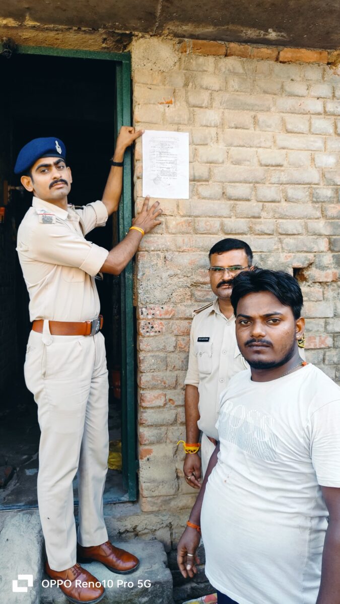 पुलिस ने फरार आरोपित के घर पर चिपकाया इश्तेहार