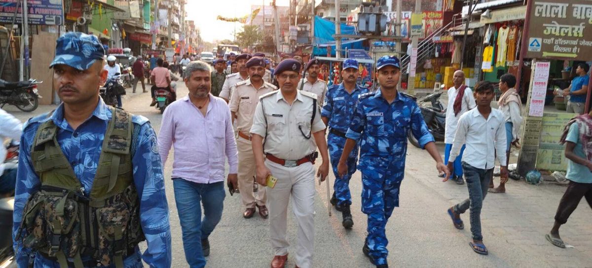 रामनवमी को लेकर पुलिस ने तरवा व वजीरगंज में निकाला फ्लैग मार्च