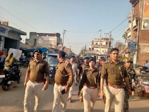 वजीरगंज में पुलिस ने निकाला फ्लैग मार्च