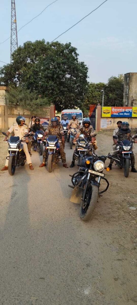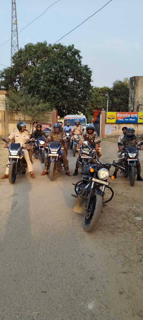 बांकेबाजार. रोशनगंज पुलिस ने दशहरा पर्व को शांतिपूर्ण वातावरण में संपन्न कराने के उद्देश्य से शनिवार को फ्लैग मार्च निकाला. फ्लैग मार्च थाना परिसर से प्रारंभ हुआ जो चौगायी, बालासोत, कोयरी बिगहा, जमुआरा कला, मझौलिया, बैताल, मंजरी खुर्द, परसाचुआं सहित विभिन्न गांवों में पहुंचा. इस संबंध में थानाध्यक्ष अनु राजा ने बताया कि थाना क्षेत्र के विभिन्न गांव में शांतिपूर्ण तरीके से दशहरा मनाने को लेकर लोगों से अपील की गयी. ग्रामीणों से जगह-जगह पर रुक कर त्योहार को आपसी भाईचारे के साथ मनाने की अपील की. इस मौके पर कई पुलिसकर्मी उपस्थित थे.