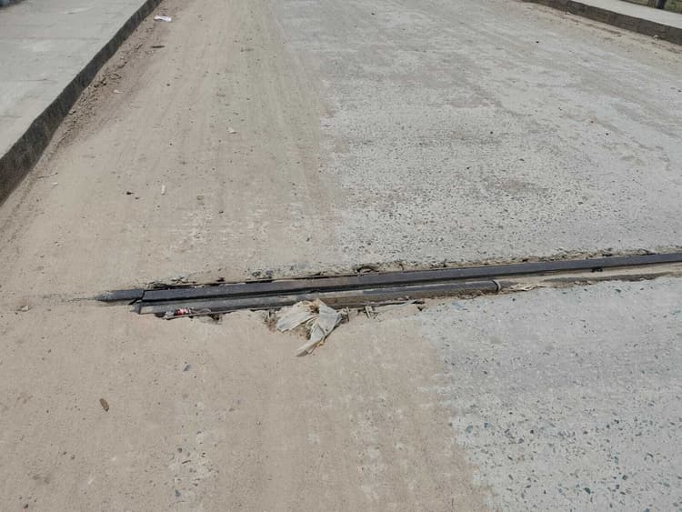 गड्ढे से ढलाई के रॉड बाहर निकलने से वाहनों के टायर हो रहे क्षतिग्रस्त