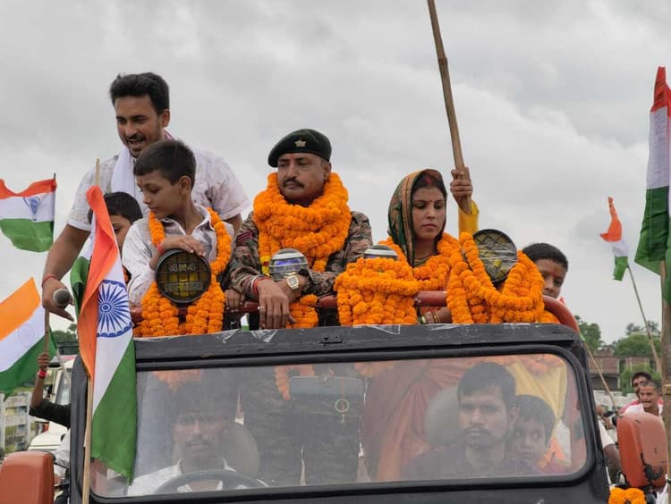 परैया. प्रखंड के इगुनी गांव निवासी रिटायर्ड फौजी अभय कुमार सिंह का उनकी सेवानिवृत्ति पर शुक्रवार को गृह क्षेत्र में भव्य जुलूस निकालकर सम्मान किया गया. अभय कुमार सिंह ने देश की सेवा में 24 साल का लंबा सफर तय किया है. जुलूस सरबदीपुर से शुरू होकर परैया बाजार होते हुए इगुनी तक गया और इसमें देशभक्ति का अद्भुत नजारा देखने को मिला. जुलूस में ””भारत माता की जय””, ””वंदे मातरम”” और ””हिंद की सेना जिंदाबाद”” के नारे गूंजते रहे. जुलूस में गुरुआ विधायक विनय कुमार यादव, भाजपा नेता अनंत दांगी, उपेंद्र सिंह, अजमतगंज मुखिया सुनील कुमार, निवास सिंह, अनुज सिंह, अजय सिंह, मोनू सिंह, गोलू, अनुराग, निर्भय, मुकुल, विक्की समेत सैकड़ों लोग शामिल हुए. अभय कुमार सिंह 20 सितंबर 2001 को भारतीय सेना में शामिल हुए थे और तीन अक्टूबर 2025 को सेवानिवृत्त हुए. सेवानिवृत्ति के बाद जब फौजी अभय कुमार सिंह इगुनी पहुंचे, तो पूरे गांव ने उनका भव्य स्वागत किया और अपने सपूत के सम्मान में देशभक्ति और कृतज्ञता का प्रदर्शन किया.