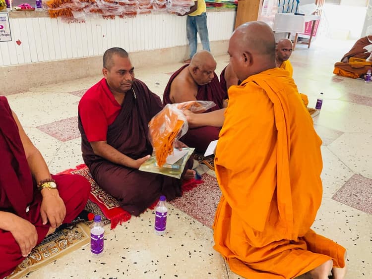 बोधगया. बोधगया में रविवार को इंडियन-वियतनामी बुद्धिस्ट ट्रस्ट के सौजन्य से संघदान का आयोजन किया गया. बोधगया के मेडिटेशन सेंटर में रविवार को 100 बौद्ध भिक्षुओं को संघदान कराया गया. विश्व शांति के उद्देश्य से इंडियन-वियतनामी बुद्धिस्ट ट्रस्ट ने संघदान कराया है. इस अवसर पर बोधगया के विभिन्न बौद्ध मठों व स्थानीय भिक्षु पहुंचे थे. बौद्ध भिक्षुओं ने सबसे पहले सुत्तपाठ कर पूजा-अर्चना की व उसके बाद संघदान कराया गया. ट्रस्ट के केयर टेकर बिनोद कुमार ने बताया कि इंडियन-वियतनामी बुद्धिस्ट ट्रस्ट की संचालक न्यूगेन थी सुंग के आदेश के बाद प्रत्येक वर्ष की तरह इस वर्ष भी विश्व शांति की कामना करते हुए संघदान कराया गया है. संघदान के दौरान बौद्ध भिक्षुओं को भोजन के बाद अंगवस्त्र प्रदान किया गया.