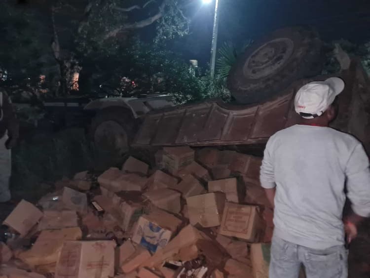 नीचे शराब, भागने के चक्कर में पलटा ट्रैक्टर