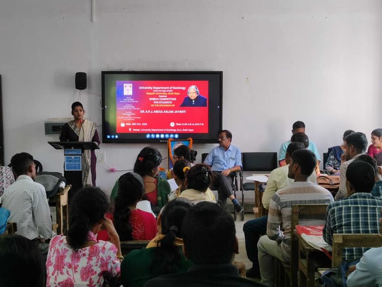 एमयू के स्नातकोत्तर समाजशास्त्र विभाग में मनायी गयी एपीजे अब्दुल कलाम की जयंती वरीय संवाददाता, बोधगयामगध विश्वविद्यालय के स्नातकोत्तर समाजशास्त्र विभाग एवं आइक्यूएसी के संयुक्त तत्वावधान में महान वैज्ञानिक भारत के 11वें राष्ट्रपति डॉ एपीजे अब्दुल कलाम की जयंती मनायी गयी. इस अवसर पर विभाग के छात्रों के लिए भाषण प्रतियोगिता का आयोजन किया गया. आयोजित भाषण प्रतियोगिता का विषय डॉ एपीजे अब्दुल कलाम और विकसित भारत 2047 का विजन था. कार्यक्रम के मुख्य अतिथि प्रो मुकेश कुमार थे. प्रो दीपक कुमार ने कहा कि राष्ट्र निर्माण, सामाजिक आर्थिक विकास, विद्यार्थियों के जीवन में, शिक्षा आदि क्षेत्रों में इनका अतुल्य योगदान रहा है. इन्होंने कहा कि अपने सपने और लक्ष्यों को पाने के लिए विद्यार्थियों के अंदर एक जुनून होना चाहिए. प्रो प्रमोद कुमार चौधरी ने डॉ कलाम के किशोरावस्था और युवावस्था के उद्धरणों को साझा करते हुए कहा कि उनका जीवन अत्यंत प्रेरणादायी है, जो हमें यह बताता है कि कैसे सामान्य परिवेश से होते हुए भी हम मेहनत करते हुए अपने जीवन के महानतम मुकाम तक पहुंचे सकते हैं. इस अवसर पर विभाग के शिक्षक डॉ प्रियम शर्मा, डॉ वंदना कुमारी, डॉ अनन्या स्वराज, डॉ कविता कुमारी, राहुल सिंह मौजूद थे.