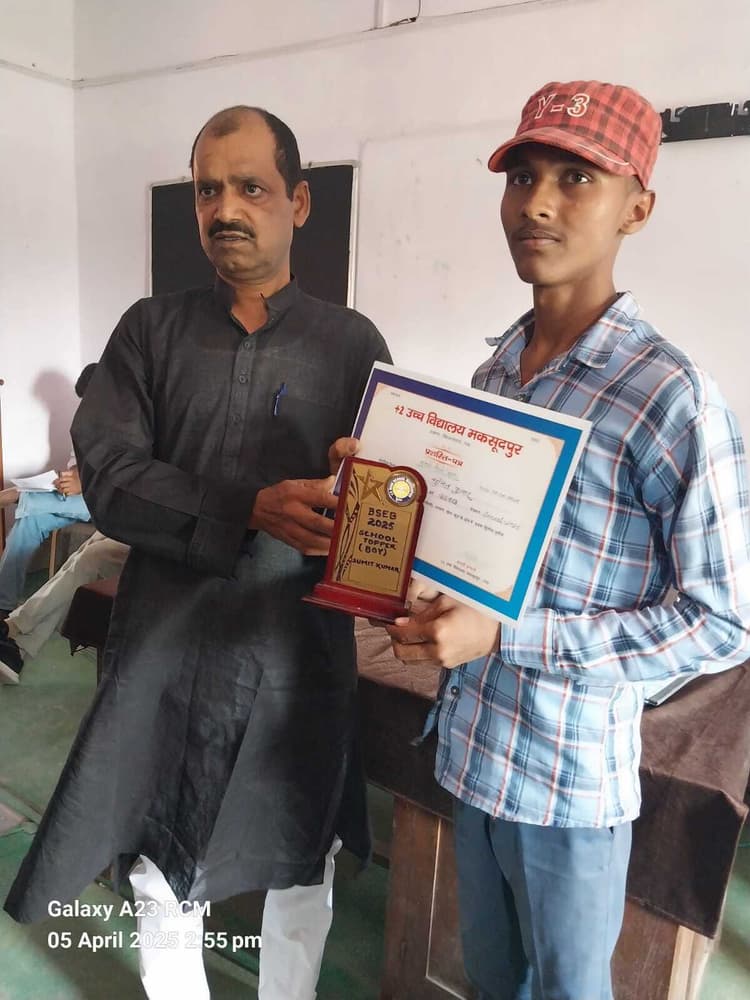 उच्चतर माध्यमिक विद्यालय मकसूदपुर में वार्षिक माध्यमिक परीक्षा 2025 में सफल छात्र-छात्राओं को सम्मानित किया गया. विद्यालय के छात्र सुमित कुमार ने 476 अंक प्राप्त करते हुए अनुमंडल स्तर पर अपनी प्रतिभा का लोहा मनवाया. सुमित कुमार के साथ साथ गुलशन कुमार ने 460 अंक प्राप्त करते हुए गणित विषय में 100 में पूरे 100 अंक प्राप्त किये. बालिका वर्ग में नंदनी कुमारी ने 464 अंक प्राप्त कर विद्यालय एवं समाज को गौरवान्वित किया. इस अवसर पर विद्यालय के प्रधानाध्यापक सह माध्यमिक शिक्षक संघ के जिलाध्यक्ष मनोज कुमार सिंह ने समारोह को संबोधित करते हुए सभी सफल छात्र-छात्राओं के उज्ज्वल भविष्य के लिए शुभकामनाएं दीं. विद्यालय में अध्ययनरत छात्र-छात्राओं को मैट्रिक परीक्षा में उत्कृष्ट प्रदर्शन करने वाले बच्चों से प्रेरणा लेने का आह्वान किया. प्रधानाध्यापक के द्वारा सफल बच्चों को प्रशस्ति पत्र, मेडल व ट्रॉफी देकर सम्मानित किया गया. इस अवसर पर विद्यालय के शिक्षक शशिकांत कुमार, कंचन कुमारी, अमित कुमार, नीलम कुमारी आदि उपस्थिति थे. अतिथि के रूप में मध्य विद्यालय मकसूदपुर के शिक्षक अभिषेक कुमार मौजूद रहे.डिस्क्लेमर: यह प्रभात खबर समाचार पत्र की ऑटोमेटेड न्यूज फीड है. इसे प्रभात खबर डॉट कॉम की टीम ने संपादित नहीं किया है