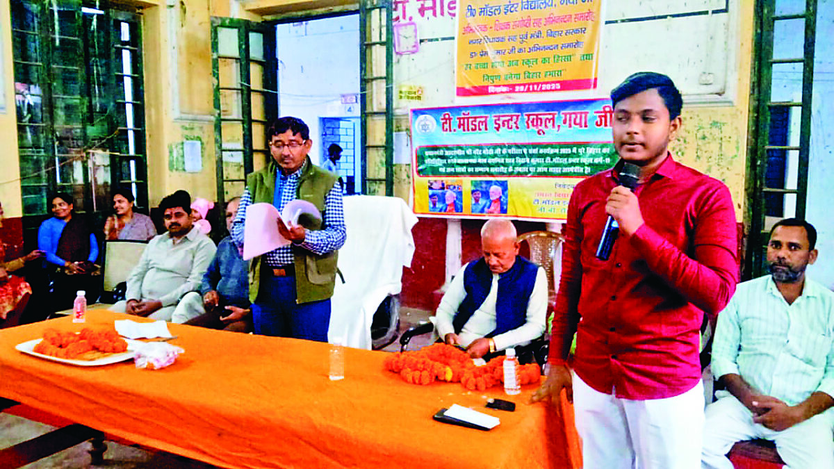 गया जी. टी मॉडल इंटर विद्यालय में शनिवार को सम्मान समारोह का आयोजन किया गया, जिसमें विद्यालय के छात्र विराज कुमार को विशेष रूप से सम्मानित किया गया. विराज ने प्रधानमंत्री नरेंद्र मोदी के परीक्षा पे चर्चा कार्यक्रम में पूरे बिहार का प्रतिनिधित्व किया था. यह कार्यक्रम अब गिनीज बुक ऑफ वर्ल्ड रिकॉर्ड में शामिल हो गया है और इसके साथ ही विराज कुमार का नाम भी रिकॉर्ड में दर्ज हो गया है. सम्मान समारोह में विद्यालय के प्रभारी प्राचार्य मो इकबाल, वरिष्ठ समाजवादी नेता राम लखन स्वर्णकार, कांग्रेस नेता उमाकांत गुप्ता, विद्यालय के प्राचार्य साकेत बिहारी शर्मा, शिक्षक मो. तौफीक, शिक्षक सत्यम कुमार सिंह, शिक्षिका संगीता कुमारी, शिक्षिका अमिता कुमारी वर्मा सहित विद्यालय के कई छात्र उपस्थित रहे. कार्यक्रम के दौरान शिक्षकों ने मिलकर विराज कुमार को दिल्ली से प्राप्त प्रमाणपत्र प्रदान कर सम्मानित किया. सम्मान ग्रहण करते हुए विराज ने कहा कि यह उपलब्धि केवल व्यक्तिगत सम्मान नहीं, बल्कि पूरे विद्यालय परिवार के सहयोग और मार्गदर्शन का परिणाम है. उन्होंने कहा कि गिनीज बुक ऑफ वर्ल्ड रिकॉर्ड में नाम दर्ज होना उनके विद्यालय और सभी सहयोगियों की देन है.