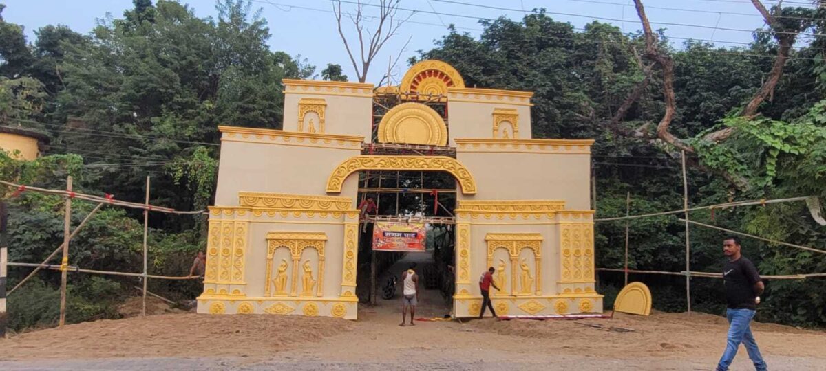 फोटो- गया बोधगया 205- खिरियावां स्थित संगम घाट पर भगवान भास्कर के लिए बन रहा पंडाल