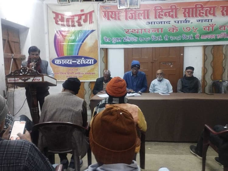 संवाददाता, गया जी आजाद पार्क स्थित जिला हिंदी साहित्य सम्मेलन भवन में शनिवार को काव्य संध्या 586 का आयोजन किया गया, जिसकी अध्यक्षता सभापति सुरेंद्र सिंह सुरेंद्र व संचालन उदय सिंह ने किया. इस अवसर पर मुख्य अतिथि के रूप में पूर्व सभापति डॉ रामकृष्ण उपस्थित रहे. काव्य संध्या का शुभारंभ विजय श्री ने अपने कृषि गीत- धनवा के लगलई कटनिया धान काटे कमिनिया… से की. उदय सिंह ने कहा- अपने देश के खातिर हम सब खड़े हैं सीना तान, हम भारत के वीर जवान. डॉ निरंजन श्रीवास्तव ने कहा-अब पछताने से क्या?? फायदा क्यों करते हो संताप, लोकतंत्र का महापर्व देखो, अब हो गया समाप्त. सहज कुमार ने कहा- कांटा कठोर है, रास्ता कठोर है तो डर जाऊं क्या?? देख दुविधा मर जाऊं क्या?? बिंदेश्वरी प्रसाद सिंह ने गजल में गाया- पास उनके हैं जमीनें कारखाने और भी, चाहिए उन्हें दौलत खजाने और भी. मुद्रिका सिंह ने व्यंग्य किया- मैं समझ न क्या?? लिखूं, क्या?? नहीं लिखूं, मन हमेशा अन्तर्द्वंद में उलझा रहता है. युवा गीतकार अजीत कुमार ने गीत में गाया- मैंने चाहा गिरे को उठाऊं, पर मुझे ही गिराने लगे हैं. एसएम शमसुद्दीन ने हिन्दी को आगे बढ़ाने की बात कही. विपिन कुमार ने कहा- प्रेम नहीं खेतों में नफरत की फसलें लहराने लगी हम. शंकर प्रसाद ने अपनी कविता में कहा- जिसका कंचन निरोग शरीर है, वही सबसे अमीर है. डॉ प्रकाश गुप्ता ने कहा- अदभूत अविस्मरणीय आया है परिणाम, खिला कमल जैसे अवतरित हुए राम. नन्द किशोर सिंह ने कहा- सरकार जी सरकार जी! उद्योग धंधे लगाने की है दरकार जी! विजय सिंह ने कहा- चोर बेईमान के हरा के उनका घरे बैठा देल. खालिक हुसैन परदेसी ने गजल में गाया- महफिल में अपना प्यार छुपाओगे किस तरह, उनकी नजर से दिल को बचाओगे किस तरह. डॉ राम परीखा सिंह ने कहा- मतदान किया, मतदान किया, किसी को हंसाया किसी को रुलाया. सुमंत ने गीत में गाया – अपने नीतीश कुमार किस्मत के हैं साढ़, 10 वीं बार वे फिर से झंडा देंगे टांग. सभापति सुरेंद्र सिंह सुरेंद्र ने कहा- एनडीए के जीत और महागठबंधन के हार हे, अइसन करिश्मा की भौचक बिहार हे. अंत में महामंत्री ने सभी के प्रति धन्यवाद ज्ञापित किया.