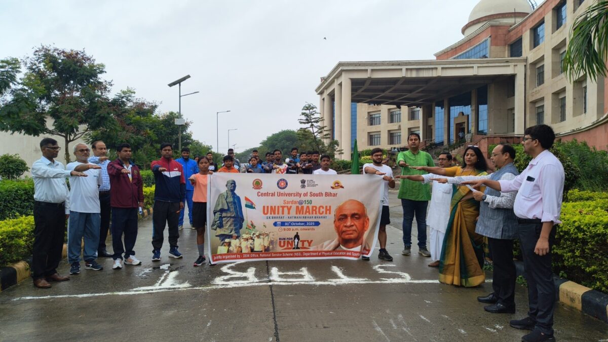 भारत रत्न सरदार वल्लभ भाई पटेल की 150वीं जयंती पर दक्षिण बिहार केंद्रीय विश्वविद्यालय (सीयूएसबी) ने राष्ट्रीय एकता दिवस के रूप में मनाया. सीयूएसबी परिसर में कुलपति प्रो कामेश्वर नाथ सिंह के मार्गदर्शन में राष्ट्रीय सेवा योजना (एनएसएस) व डीएसडब्ल्यू ऑफिस, शारीरिक शिक्षा विभाग व स्पोर्ट्स कमेटी के संयुक्त तत्वाधान में विशेष कार्यक्रम आयोजित किया गया. इस अवसर पर कुलसचिव प्रो नरेंद्र कुमार राणा के नेतृत्व में समारोह स्थल पर मौजूद सीयूएसबी परिवार के सदस्यों ने एक भारत, आत्मनिर्भर भारत के स्लोगन के साथ राष्ट्रीय एकता की शपथ ली गयी. कुलसचिव प्रो नरेंद्र कुमार राणा ने मौजूद शिक्षकों व विद्यार्थियों के समक्ष सरदार वल्लभ भाई पटेल के मिशन और उनकी दूरगामी राष्ट्रीय एकता व अखंडता की सोच को साझा किया. इस अवसर पर विशिष्ट अतिथि के रूप में मौजूद भौतिकी विभाग के प्रो बुधेंद्र कुमार सिंह ने राष्ट्रीय सेवा योजना की आत्मा व संकल्प को वल्लभ भाई पटेल के राष्ट्रीय मिशन से जोड़ने की बात रखी. वहीं, एनएसएस की संयोजक प्रो उषा तिवारी ने प्रतिभागियों को प्रेरित करते हुए सरदार पटेल की देश के सामने मुश्किल परिस्थितियों में भी निर्णायक भूमिका लेने की क्षमता को ऐतिहासिक बताया. कार्यक्रम के एनएसएस के कार्यक्रम अधिकारी डॉ पारिजात प्रधान के साथ डॉ जितेंद्र प्रताप सिंह, डॉ राहुल सिंह, प्रो प्रवीण कुमार, डॉ मंगलेश कुमार मंगलम, डॉ सुजीत कुमार, डॉ प्रिय रंजन ने भी अपने विचार रखे.मिनी मैराथन में छात्र-छात्राओं ने दिखाया दमखम