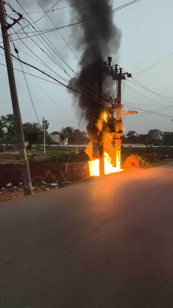 टिकारी. बढ़ती गर्मी के कारण मंगलवार को टिकारी-बेला मार्ग पर बेल्हड़िया कब्रिस्तान के पास लगे ट्रांसफाॅर्मर में शाम को अचानक आग लगने से ट्रांसफाॅर्मर धूं-धूंकर जलने लगा और थोड़ी देर के लिए अफरा-तफरी का माहौल हो गया. आसपास रहे लोगों ने इस बात की जानकारी बिजली विभाग को दी. सूचना मिलते ही त्वरित कार्रवाई करते हुए बिजली सप्लाइ बंद की. घटना की जानकारी फायर ब्रिगेड को दी गयी. मौके पर पहुंची फायर ब्रिगेड और आम लोगों की मदद से आग पर काबू पाया गया. घटना के संबंध में बिजली जेइ हिमांशु कुमार ने बताया कि डीटी मीटर के केबल में शार्ट-सर्किट की वजह से आग लगी है. आग पर काबू पाने का प्रयास किया जा रहा है. सेफ्टी के ख्याल से बिजली सप्लाइ बंद की गई है. ट्रांसफाॅर्मर में आग की वजह से बेल्हड़िया मुहल्ले की बिजली सप्लाइ मंगलवार को ठप रही. गर्मी की वजह से लोगों को काफी परेशानियों का सामना करना पड़ा.