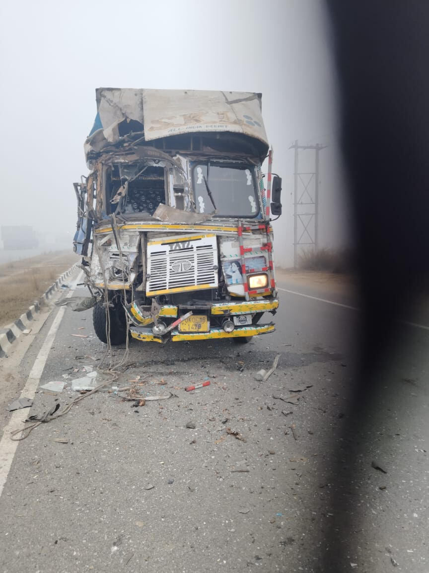 घने कोहरे के बीच दो ट्रकों में टक्कर