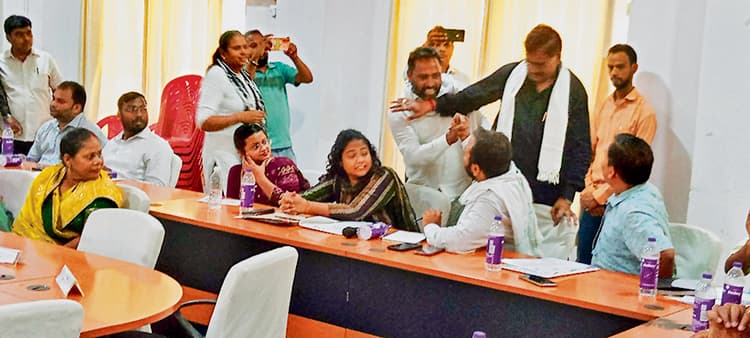 पिछली बैठक में दिये गये एजेंडों का संतोषजनक उत्तर नहीं मिलने पर सदस्यों ने बिजली, शिक्षा, पशुपालन, लोक स्वास्थ्य अभियंत्रण समेत कई विभागों के अधिकारियों पर मनमानी का आरोप लगाया और कार्रवाई की मांग की. डीडीसी ने स्पष्टीकरण देते हुए बताया कि अधिकतर अधिकारी पितृपक्ष मेला को लेकर आयोजित डीएम की बैठक में शामिल थे.अवैध वसूली का मामला उठा, अधिकारी पर हमला होते-होते बचाबैठक के दौरान कुंदन कुमार ने कृषि कनेक्शन देने के नाम पर संवेदक द्वारा तीन से पांच हजार रुपये तक अवैध वसूली का आरोप लगाया. संबंधित विभाग के अधिकारी ने जवाब में कहा कि घूस क्यों दी गयी, शिकायत क्यों नहीं की? इस पर बहस बढ़ गयी और अमर्यादित भाषा का प्रयोग शुरू हो गया. स्थिति तब बिगड़ गयी जब अध्यक्ष और उपाध्यक्ष के निजी सहायकों सहित कई सदस्य अधिकारी की कुर्सी तक पहुंच गये और मारपीट की नौबत आ गयी. बीच-बचाव के बाद मामला शांत हुआ, लेकिन दो अधिकारियों को बैठक से बाहर कर दिया गया.बिजली विभाग के दो अधिकारी किये गये बाहर