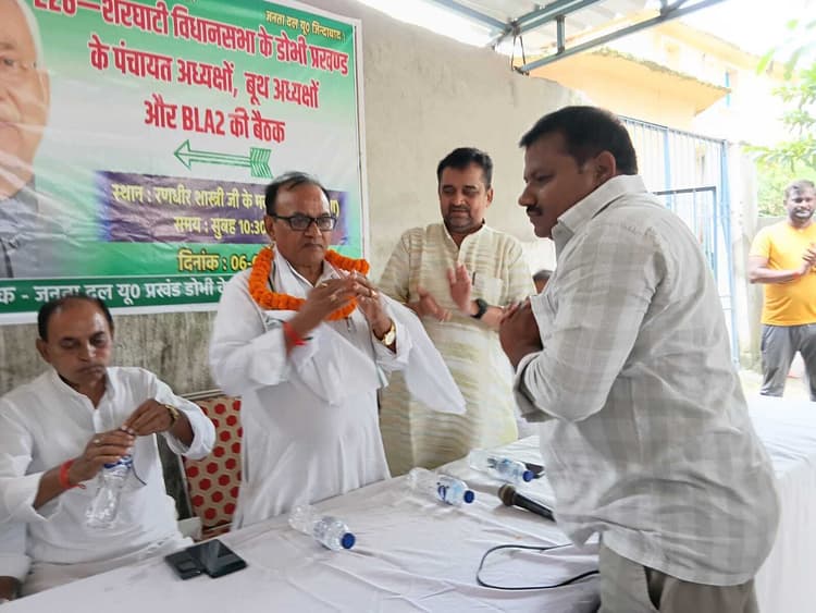 शेरघाटी/डोभी. तीन दिवसीय गया दौरे पर आये अति पिछड़ा वर्ग आयोग के अध्यक्ष नवीन कुमार आर्य, जदयू जिला प्रभारी अरुण कुशवाहा व शेरघाटी विधानसभा प्रभारी मनोज चंद्रवंशी बुधवार को शेरघाटी पहुंचे. नेताजी मैरेज हॉल, हेमजापुर में आमस व शेरघाटी प्रखंड के सभी पंचायत अध्यक्षों और 192 बूथों के लिए चयनित बीएलए-टू कार्यकर्ताओं के साथ बैठक की. वहीं डोभी प्रखंड में बीआरसी के पास रंधीर कुमार शास्त्री के आवास पर 13 पंचायत अध्यक्षों और 113 बीएलए-2 कार्यकर्ताओं के साथ भी बैठक हुई, जिसकी अध्यक्षता पूर्व मंत्री डॉ. विनोद प्रसाद यादव ने की. बैठकों में गहन मतदाता पुनरीक्षण कार्य की समीक्षा की गयी और यह सुनिश्चित करने पर जोर दिया गया कि किसी भी मतदाता का नाम सूची से न कटे. साथ ही आगामी विधानसभा चुनाव को लेकर शेरघाटी सीट पर जदयू प्रत्याशी की जीत सुनिश्चित करने हेतु कार्यकर्ताओं की भूमिका और जिम्मेदारियों पर चर्चा हुई. इस दौरान शेरघाटी जदयू प्रखंड अध्यक्ष प्रो अरविंद कुमार, महिला अध्यक्ष रीना कुमारी, आमस प्रखंड अध्यक्ष रामवृक्ष प्रसाद, डोभी प्रखंड अध्यक्ष सुरेंद्र कुमार, महिला प्रखंड अध्यक्ष मुन्नी देवी, टीना कुमारी, जितेंद्र कुमार दांगी, अमानुल्लाह खान सहित कई कार्यकर्ता मौजूद रहे.