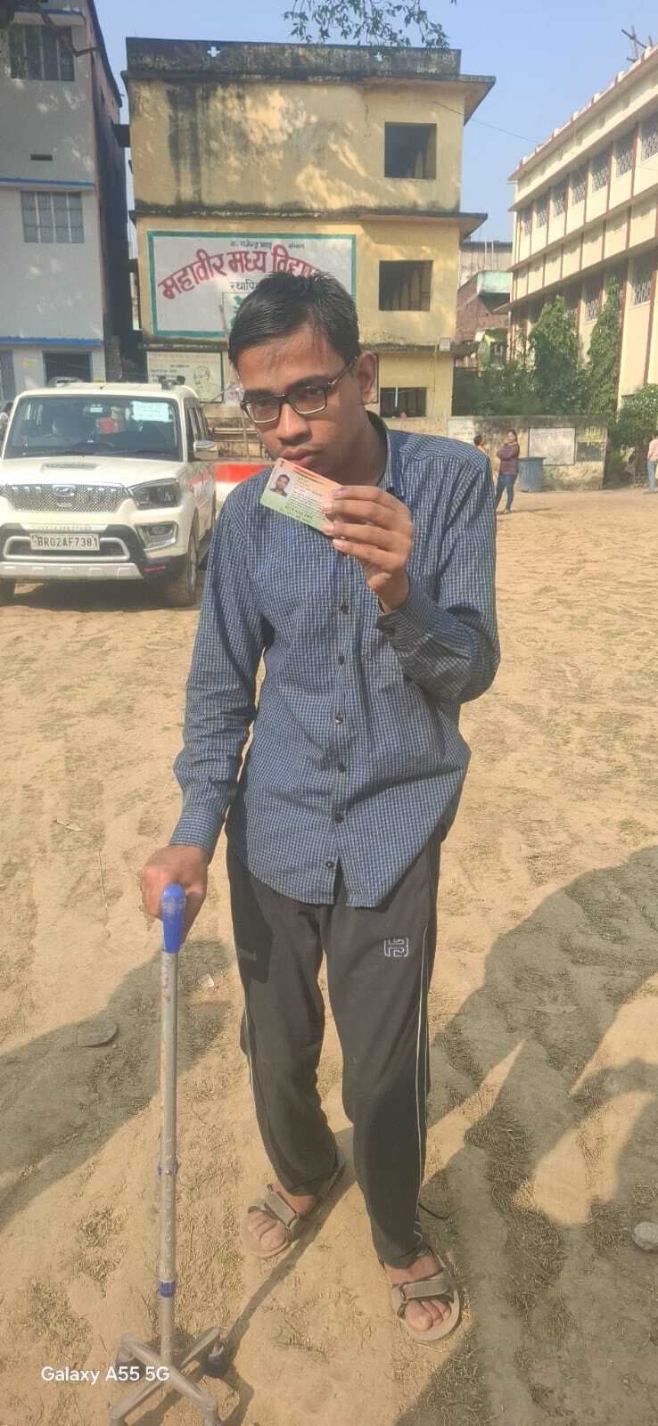 दिव्यांग रहने के बावजूद भी पहली बार वोट किया, हो रहा गर्व का एहसासफोटो-गया- रोहित-251- पहली बार वोट करते दिव्यांग कुनाल कुमार