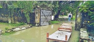 पानी तैरकर आवागमन करना पड़ रहा है. महिला छात्रावास के गेट पर जलजमाव हो जाने के कारण छात्राओं ने आवागमन के लिए चौकियों को जोड़कर वैकल्पिक प्रबंध कराया है.