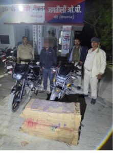 गोपालगंज. पुलिस अधीक्षक के निर्देशानुसार जिले में लगातार सघन वाहन जांच अभियान चलाया जा रहा है. इसी क्रम में पुलिस ने अलग-अलग स्थानों पर छापेमारी और जांच के दौरान 212 लीटर देसी एवं विदेशी शराब बरामद की है. साथ ही एक अभियुक्त को गिरफ्तार किया गया है और तीन बाइकें भी जब्त की गयी हैं. जानकारी के अनुसार हथुआ थाना पुलिस ने तुर्पटी के पास वाहन जांच के दौरान 23 लीटर विदेशी शराब बरामद की. साथ ही तस्करी में उपयोग की जा रही एक बाइक को भी जब्त किया गया. इसी तरह मीरगंज थाना पुलिस ने कोडरहाटा के समीप छापेमारी कर 63 लीटर देसी शराब बरामद की, जिसके बाद तस्करों की तलाश जारी है. उधर, जगतौली ओपी पुलिस को बड़ी सफलता मिली, जहां भोपतपुरा से पुलिस ने अभियुक्त भोरे थाना के मुराडीह गांव के निवासी शंभू रजक के पुत्र बिट्टू कुमार को गिरफ्तार किया. उसके पास से 126 लीटर देसी शराब बरामद की गयी. साथ ही शराब ढोने में प्रयुक्त दो बाइकें भी जब्त की गयी हैं. पूछताछ में अभियुक्त ने शराब तस्करी में अपनी संलिप्तता स्वीकार की है. पुलिस का कहना है कि बरामदगी और गिरफ्तारी के बाद संबंधित थानों में उचित धाराओं के तहत मामले दर्ज कर अग्रिम कार्रवाई की जा रही है. पुलिस ने बताया कि जिले में अवैध शराब के विरुद्ध अभियान आगे भी और अधिक सख्त रूप से जारी रहेगा.
