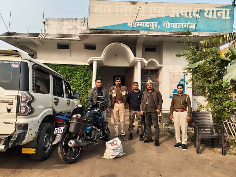 गोपालगंज. बिहार में शराबबंदी के बीच उत्पाद विभाग की टीम ने बुधवार को विभिन्न थाना क्षेत्रों में चलाये गये वाहन जांच अभियान के दौरान बड़ी सफलता हासिल की. इस दौरान कुल तीन अलग-अलग स्थानों से करीब 40 लीटर विदेशी और देसी शराब बरामद की गयी. टीम ने तीन अभियानों में कुल तीन तस्करों को गिरफ्तार किया, जबकि एक तस्कर फरार हो गया. पहली कार्रवाई बैकुंठपुर थाना क्षेत्र के बसहा सड़क किनारे की गयी, जहां वाहन जांच के दौरान पुलिस ने 16 लीटर विदेशी शराब के साथ एक बाइक को जब्त किया. हालांकि शराब तस्कर मौके से फरार होने में सफल रहा. दूसरी कार्रवाई विशंभरपुर थाना क्षेत्र के काल मटीहानिया बांध पर की गयी. टीम ने यहां 18 लीटर देसी शराब के साथ एक शराब तस्कर को बाइक सहित गिरफ्तार किया. गिरफ्तार तस्कर की पहचान बेतिया जिले के भगवानपुर थाना क्षेत्र निवासी नागेंद्र यादव के पुत्र मंटू कुमार यादव के रूप में हुई है. तीसरी कार्रवाई कुचायकोट थाना क्षेत्र के कुर्म टोला रोड पर की गई, जहां पुलिस ने वाहन जांच के दौरान छह लीटर बीयर के साथ दो शराब तस्करों को गिरफ्तार किया. उसकी पहचान जादोपुर थाना क्षेत्र के ख्वाजापुर निवासी नागेंद्र कुमार और ओलीपुर गांव निवासी दिनेश सिंह के पुत्र अमित कुमार सिंह के रूप में हुई है. टीम ने इनसे एक बाइक भी जब्त की है.