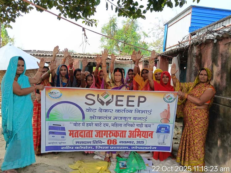 गोपालगंज. विधानसभा चुनाव को लेकर जिले में मतदाता जागरूकता अभियान जोर पकड़ता जा रहा है. मतदान प्रतिशत बढ़ाने के उद्देश्य से जिला स्वीप कोषांग की ओर से लगातार विभिन्न कार्यक्रम आयोजित किये जा रहे हैं. इसी कड़ी में बुधवार को बरौली विधानसभा क्षेत्र के बरौली प्रखंड मुख्यालय पर जीविका से जुड़ी दो दर्जन से अधिक महिलाओं की टोली ने मतदाता जागरूकता रैली निकाली. महिलाओं ने हाथों में बैनर और तख्तियां लेकर लोगों से मतदान करने की अपील की. इस दौरान पहले मतदान, फिर जलपान, एक भी वोट न रहे अधूरा, लोकतंत्र का यही है नूरा जैसे नारे गूंजे. टोली ने गांव और बाजार क्षेत्रों में घूमकर लोगों को मतदान के महत्व की जानकारी दी और छह नवंबर को मतदान केंद्र पहुंचकर मतदान करने का संकल्प भी दिलाया. महिलाओं की इस सक्रिय भागीदारी से आम लोगों में भी मतदान को लेकर उत्साह देखा गया.