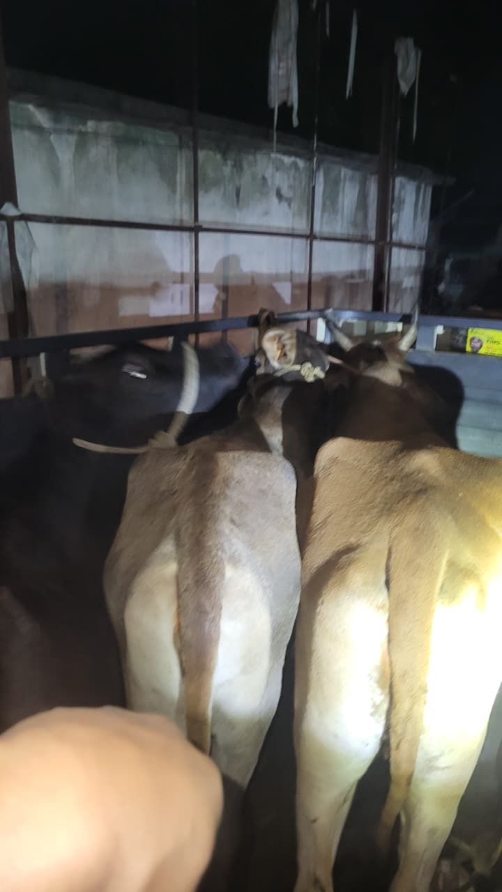 विजयीपुर. विजयीपुर पुलिस ने शुक्रवार की रात मटियारी गांव में छापेमारी कर मवेशियों से भरी एक पिकअप गाड़ी जब्त की. पुलिस ने गाड़ी से एक बछड़ा एवं पांच गाय बरामद की हैं. बताया गया कि थाना के एएसआई वीरेंद्र कुमार मुसेहरी बाजार में वाहन जांच कर रहे थे. इसी दौरान गुप्त सूचना मिली कि मटियारी गांव में बुटाई साह अपने घर के बगल में पिकअप पर तस्करी के लिए मवेशियों को लाद रहा है. सूचना मिलते ही पुलिस टीम मौके पर पहुंची. तभी सामने से आ रही पिकअप को देख चालक वाहन छोड़कर भागने लगा. पुलिस ने उसे पकड़ने का प्रयास किया, लेकिन अंधेरे का फायदा उठाकर चालक फरार हो गया. भागने के दौरान चालक की पहचान बुटाई साह के रूप में हुई. पुलिस पिकअप को थाना ले आयी, जहां जांच में पाया गया कि मवेशियों को क्रूरता से बांधकर लादा गया था. सभी मवेशियों को सुरक्षित बाहर निकाला गया. इस मामले में पशु तस्कर बुटाई साह के खिलाफ प्राथमिकी दर्ज कर पुलिस आगे की जांच में जुटी है.