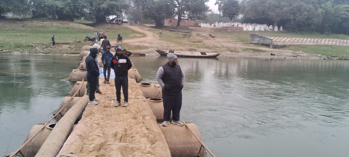 माधवाटोला खनुआ नदी पर एक युवक ने निजी खर्च से बनवा दिया पीपा पुल